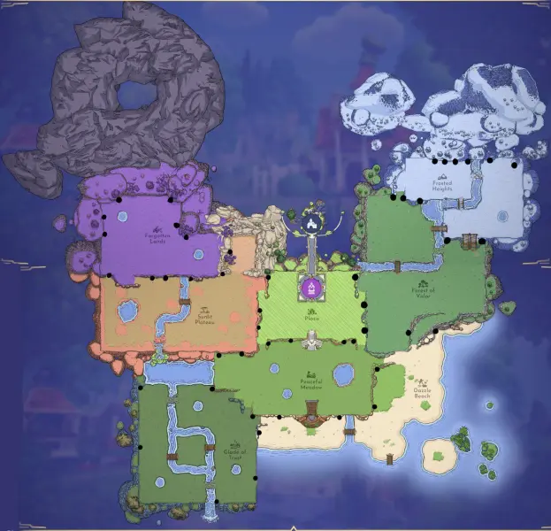 If you exclude the starting Plaza area followed by the Peaceful Meadows location, Disney Dreamlight Valley offers six different biomes that players can unlock by progressing the game and removing Night Thorns blocking the entrances to each of the six biomes using Dreamlight.
