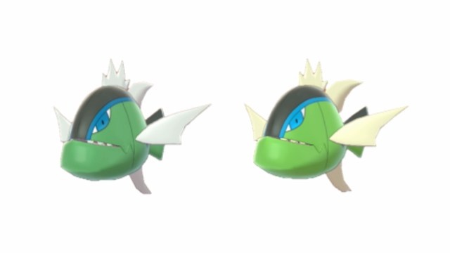 Shiny Veluza’s body is still gray, just like the original. The only difference is that the color of its fins and tail has been changed from magenta to light green. This shiny can catch in Casseroya Lake, East Province Area One, Glaseado Mountain, the North Paldean Sea, and the West Paldean Sea.