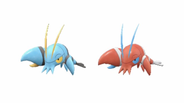 The color of this shiny is completely different from its non-shiny counterpart. Shiny Clauncher’s body is colored red compared to the regular blue of the non-shiny variant. You can catch this Violet exclusive shiny at the East Paldean Sea, the North Paldean Sea, the South Paldean Sea, and the West Paldean Sea. If you are on Scarlet, you can obtain this shiny by trading it from Violet.