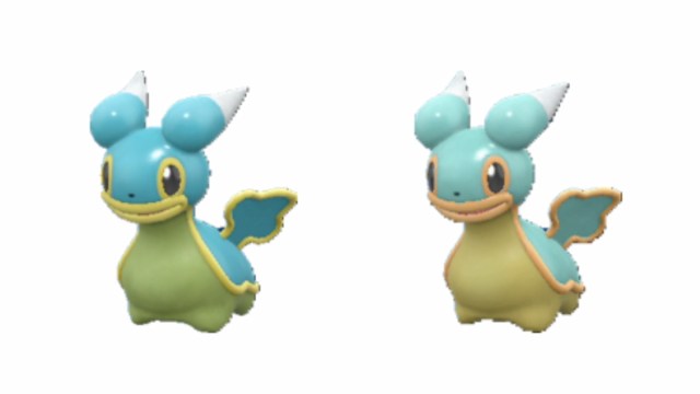 This shiny completely changes its entire color palette compared to its non-shiny variant. Its color changes from a white and pink palette to a gold and purple palette. You can catch this shiny at East Province Area Two, South Province Area Five, and West Province Areas One and Two.