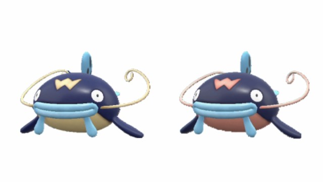 Shiny Wooper has a slightly different color than its non-shiny counterpart. Its color changes completely from sky blue with navy blue patterns to pink with dark pink patterns. This shiny can be obtained by hatching an egg from a Quagsire. A Johtonian Wooper can be obtained by exchanging a Paldean Wooper for it in Cascarrafa.