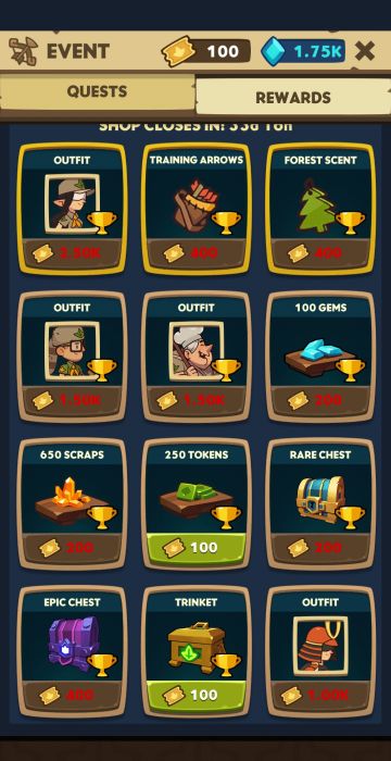 As you can see in the image above, you can get cool new outfits for Lia, Hilt or Nanna, but also Gems, Scraps, Tokens, Chests and Trickets. A lot of good stuff!