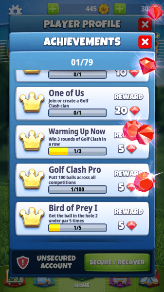 By playing and winning in Golf Clash, players can also gain many red gems. Complete the achievements available to be rewarded handsomely!