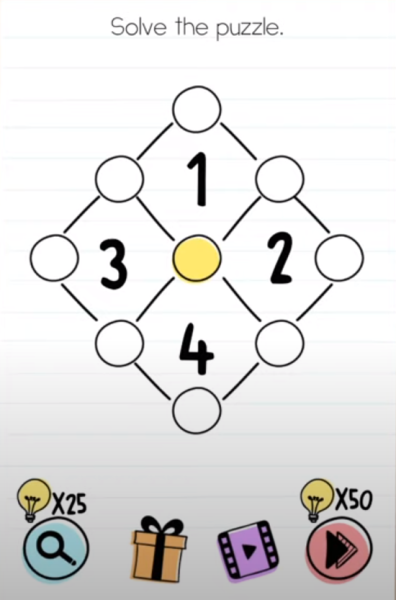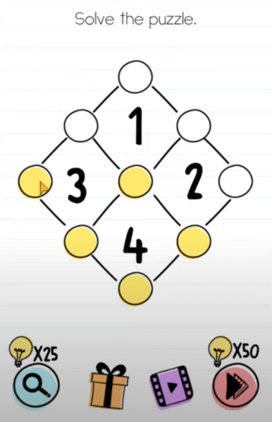 Here you can see a diamond-like structure with four different numbers. Also, you can see a few white circles and a yellow circle right in the middle of the diamond. You are able to change these circles’ colors from white to yellow by clicking on them.