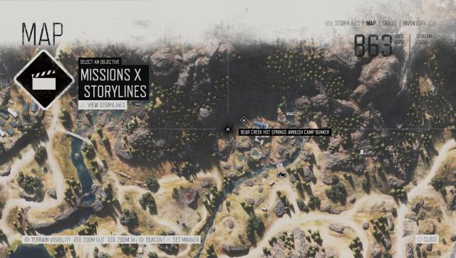 Go to the selected location, interact with the Bear Creek Hot Springs Camp Bunker door, and navigate down the stairs. Interact with the map/blueprints on the table to complete the objective “Investigate the Bunker,” clearing the Bear Creek Hot Springs Ambush Camp open-world activity.