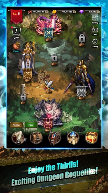 Your dungeon expedition party can hold up to four heroes, which is perfect because there is exactly four classes in the game: Warrior, Swordsman, Assassin, and Mage.