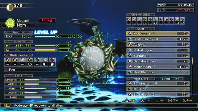 Despite being a high-level demon, Norn isn’t particularly versatile, when it comes to skills. This doesn’t mean, however, that she is bad, as skills like Luster Candy and Phys Block make her an excellent support-focused demon.
