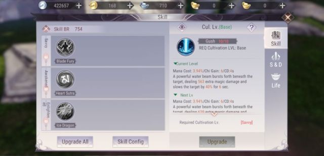 Gush – Creates a powerful water beam that bursts from below the enemy, dealing extra magic damage and slowing the target by 40% for a few seconds. It’s a pretty useful skill, if you want to add some CC to your kit.