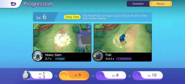 - Tackle (6s Dash): Has the user charge forward belly first, dealing damage to opposing Pokemon in the area of effect and decreasing their movement speed for a short time.