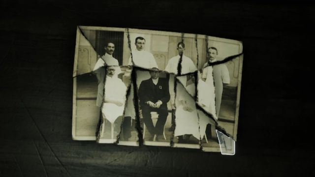 Looks like a photograph of seven men who worked at the hospital. That’s great and all, but what exactly do we do with this? Well, if you press the information button while looking at the photo, you’ll see a note with a cryptic clue written on it: