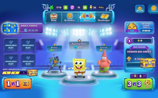 To level up your brawlers just head on to the top side of the screen and tap on the SpongeBob button. There you will see the collection of brawlers you’ve acquired so far, and the ones on your team.