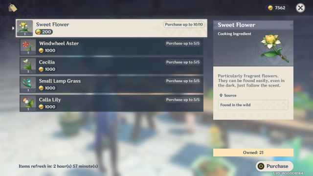 Teleport to Mondstadt and visit Flora near the city main gates. Talk to her and chose the shop option. Flora sells five Calla Lily for 1000 Mora each. So, you can buy at least five Calla Lily every day after the server reset.