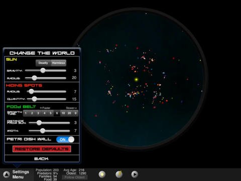 Watch life evolve in the palm of your hand! Oddly hypnotic and relaxing, Artificial Life is a simulation of the growth and evolution of microorganisms – basically artificial life forms. Initially, each organism is given a random set of rules governing its behavior. If the rules end up being useful for survival, the organism may live long enough to mate with another organism and pass its genetic code on to some offspring. A really interesting game! Click here to check it out.