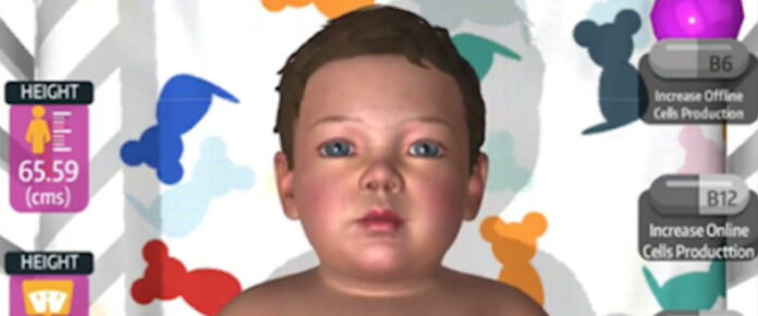To start off, your baby will be nothing but a few cells. To help grow your baby, you must give it nutrition, which is the green resource listed at the top of the screen. You will automatically accumulate nutrition over time.