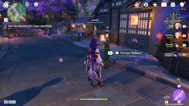 Assuming you have triggered the Reminiscence of Seirai world quest, the first thing you have to do is go to Inazuma Adventurer’s guild and talk to an NPC called Furuya Noboru.
