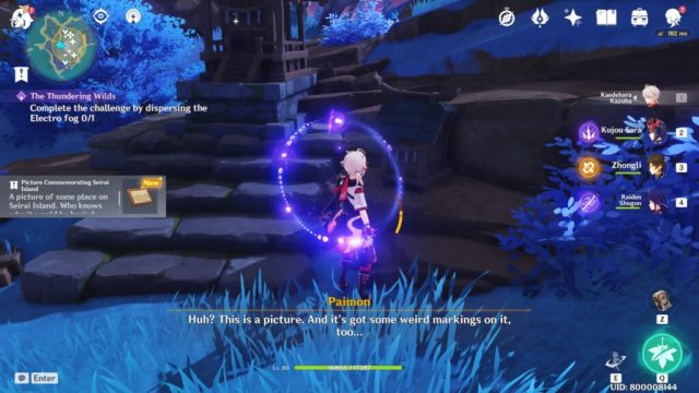 The Traveler shares the commemorating picture of Seirai Island with Furuya Noboru to learn more about the picture. However, since the Seirai Island is a secluded location, he doesn’t know much about it, apart from the fact that Inazuma Adventurer’s guild offers commissions to explore the island.