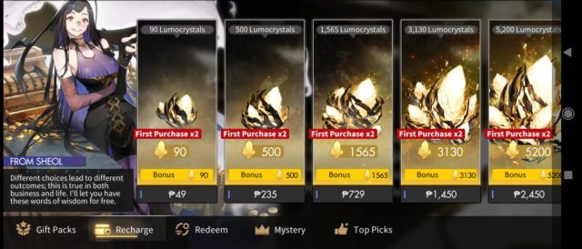 Lumo Crystals are the premium currency in Alchemy Stars. That player can get from the in-game store using real money. To buy Lumo Crystals, open Alchemy Stars and navigate to the store section. Select the second option from the bottom menu that says “Recharge”. There you will find a list of Lumo Crystal packs, along with their prices.