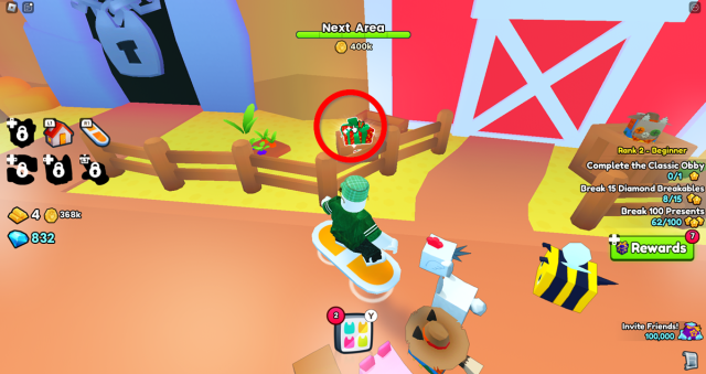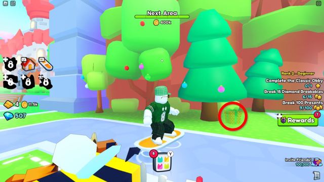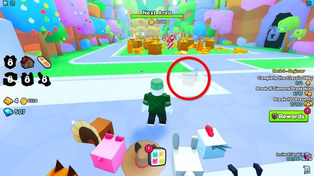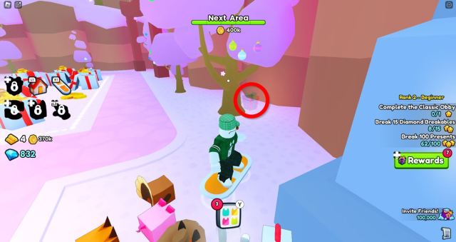 Attention! The next gift is waiting for you in the middle section of the Jungle Lobby, but it will take a lot of work to find. Enter the Jungle Lobby from Zone 18 and complete a challenging Obby to claim it. Keep your eyes peeled for a small alley-like gap on the right side during the boulder roll section, and be quick about it! The gap won’t wait for you forever. So, what are you waiting for? Get ready to show off your skills and claim your reward!