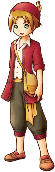 Dirk is the same mail delivery guy from Harvest Moon DS: Grand Bazaar, but this time around, he has grown into a fine young man, who travels from town to town delivering mails. He is one of the two special bachelors in Harvest Moon: A Tale of Two Towns that players can encounter during Summer 1 of Year 1 or later, in a special event.