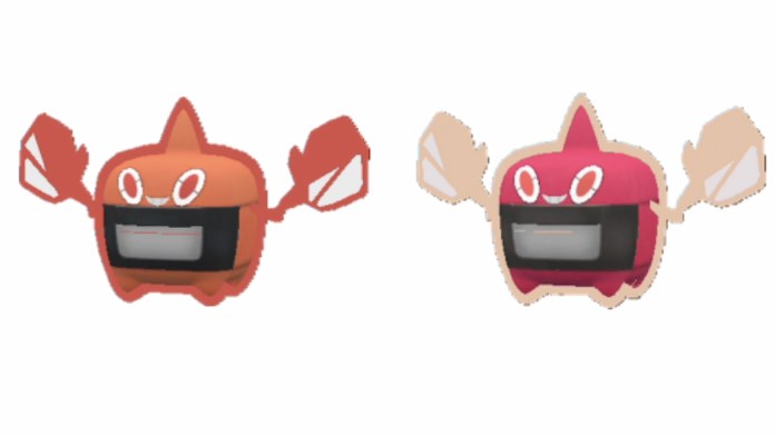 Shiny Wash Rotom’s color palette is entirely different from its non-shiny version. Its color scheme changes from orange and blue to red and peach. You can obtain this shiny by using the Rotom catalog on your Shiny Rotom and selecting Washing Machine.