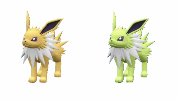 Shiny Jolteon makes a significant color change compared to its non-shiny variant. It changes the color of its body fur from yellow to neon green. You can catch this shiny at Socarrat Trail and West Province Area Three. You can also evolve a Shiny Eevee using a Thunderstone.