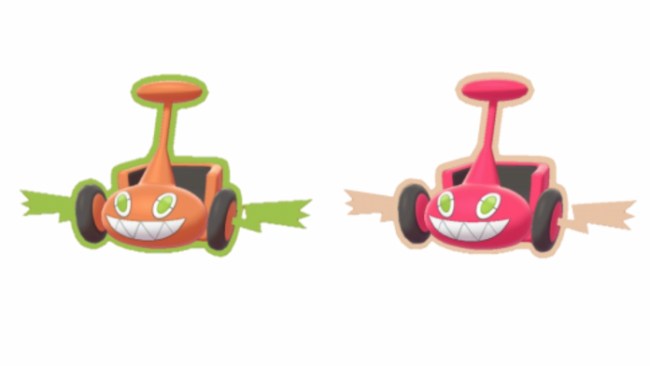 Shiny Mow Rotom has a noticeable color difference compared to its standard form. Its color palette changes from orange and green to red and peach. You can obtain this shiny by using the Rotom catalog on your Shiny Rotom and selecting Lawn Mower.