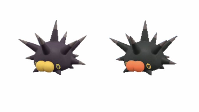 This shiny has a simple but evident change in color when compared to its non-shiny counterpart. It changes its body color and face from reddish-black and yellow to black and orange. You can catch this shiny at East Province Area Two, North Province Areas One and Three, and West Province Area Two.