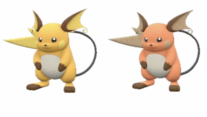 Much like its pre-evolution Shiny Pikachu, Shiny Raichu makes a simple but significant change in appearance compared to its non-shiny version. In addition, Shiny Raichu changes its body color from yellow to orange. You can catch this shiny at Area Zero and Socarrat Trail. You can also evolve a Shiny Pikachu using a Thunderstone.