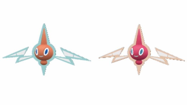 Shiny Rotom makes a complete color palette change compared to its non-shiny variant. Its color palette changes from orange, powder blue, and white to red, orange, and white. You can catch this shiny at East Province Area Two, West Province Area Two.