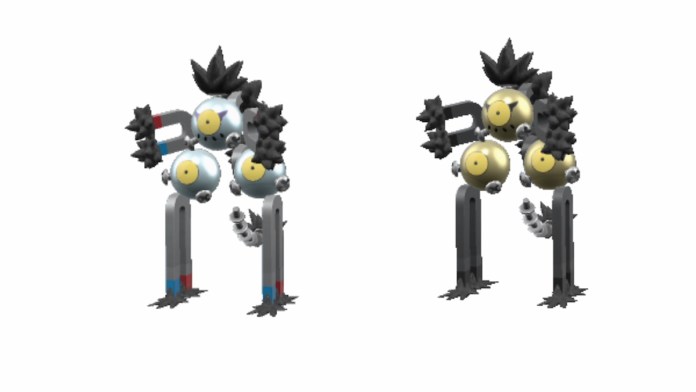 Like its pre-evolution Shiny Magnemite, Shiny Magneton’s color difference from its non-shiny version is also pretty visible. It changes its body color from steel to polished nickel, and its magnets are black, just like Shiny Magnemite. You can catch this shiny at the Dalizapa Passage and Glaseado Mountain.