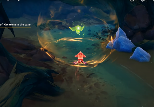 The first Great Song of Khvarena is located inside a cave. Players can use the quest navigator to find the entrance to the cave. There is a seelie by the cave entrance. Follow this seelie to enter the cave and then look for the Mysterious Amrita seal. Use Sorush’s E skill to unlock the seal and collect the first Great Song of Khvarena.
