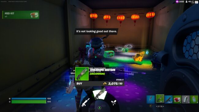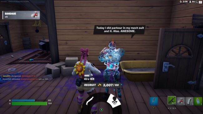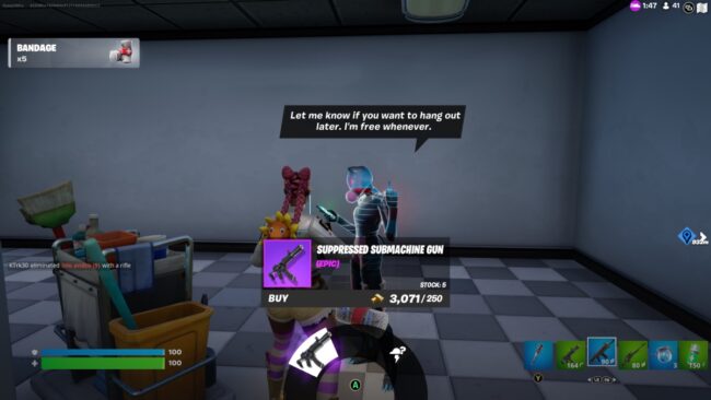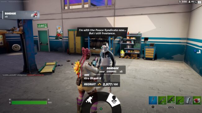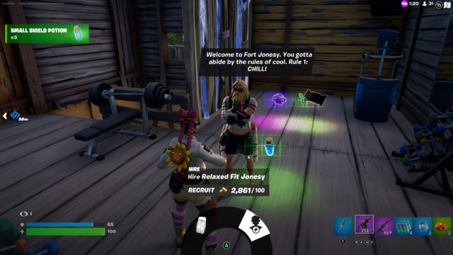 Only one of these guys spawns at Fort Jonesy at a time. You won’t be able to know which one until you visit them! They each offer slightly different items. Relaxed Fit Jonesy, for instance, sells Firefly Jars and is available for hire as a team mate. Bunker Jonesy sells Rapid Fire SMGs and is also available to hire.
