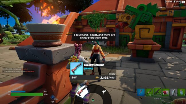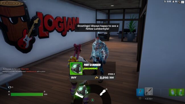 Another who arrived during Fortnitemares 2022. Ash is selling an Epic lever action shotgun, ammo, and the chance to get healed up. He’s found at The Knowby Cabin, west of Reality Tree.