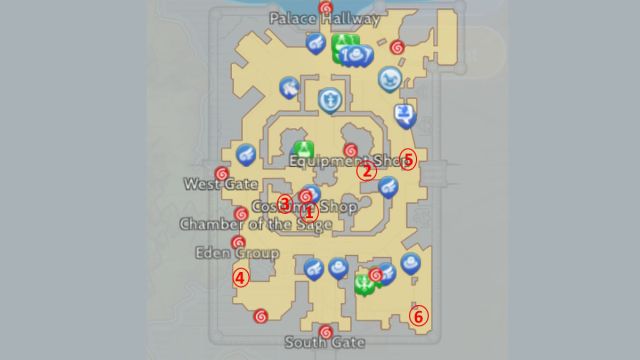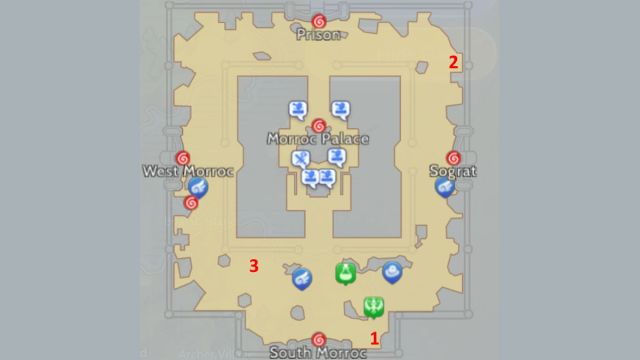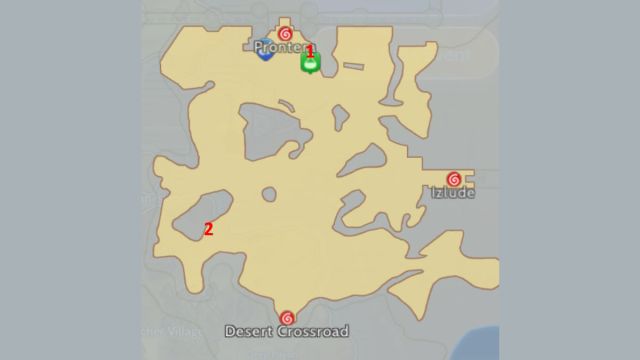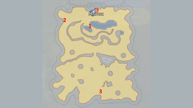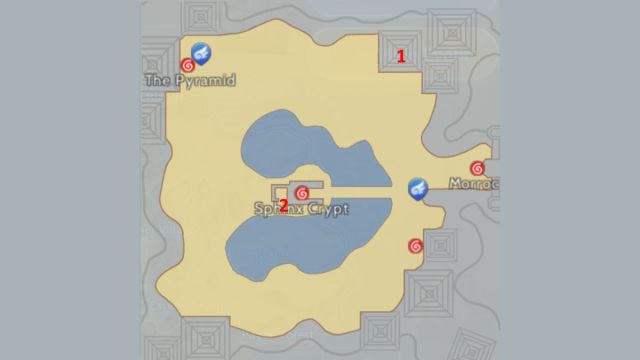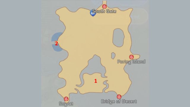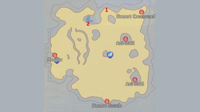- On a sunny or rainy day, look for a glowing blue spot in the oasis.