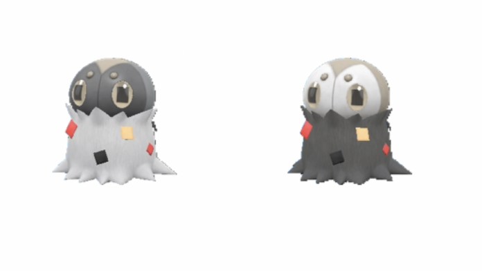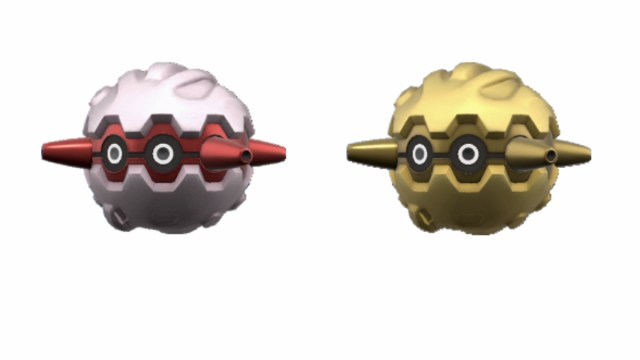 This shiny has a significant color change compared to its non-shiny version. It changes its ball’s color to gold and its body to back with a white head. You can catch this shiny at Asado Desert.