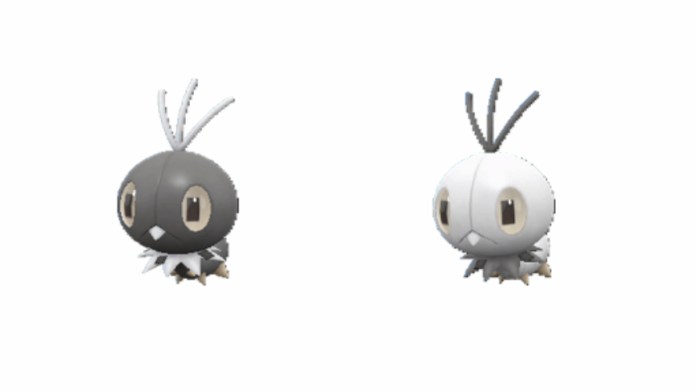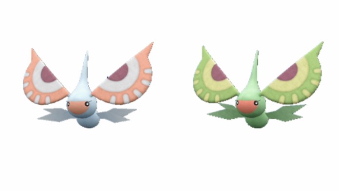 Like its pre-evolution, Shiny Scatterbug, it’s hard to miss the color change of Shiny Spewpa. It reverses its color from a black head and white body to a gray head and black body. You can catch this shiny at South Province Area One and South Province Area Four.