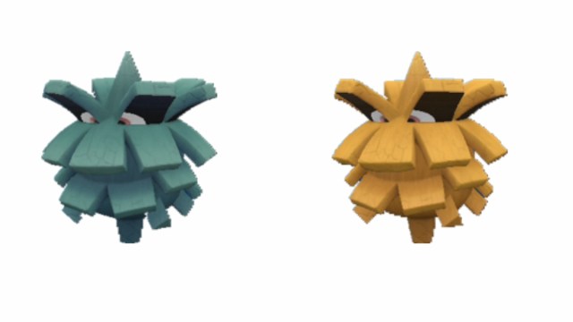 The color change of Shiny Pineco is pretty significant and hard to miss. It changes its entire body color from greenish-gray to gold. You can catch this shiny at East Province Area One and Two, South Province Area Four, Tagtree Thicket, and West Province Area Three.