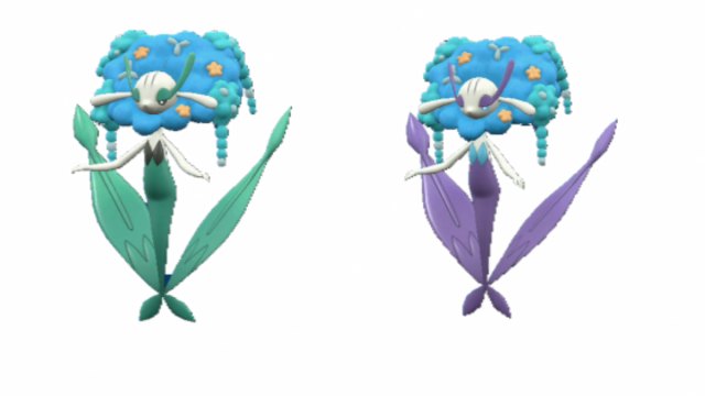 The difference in color between the Shiny Florges (Blue) and the regular version is striking. It goes from having a green body and eyelashes to purple. You can catch this shiny at North Province Area Three.