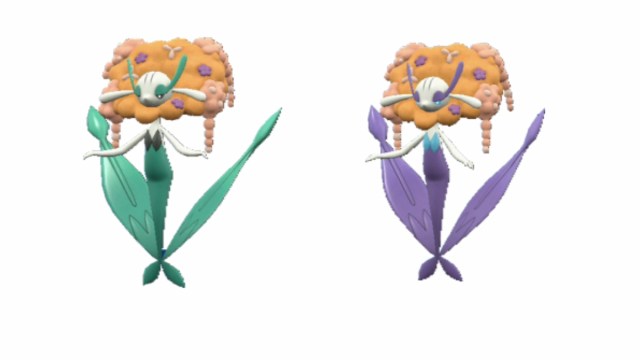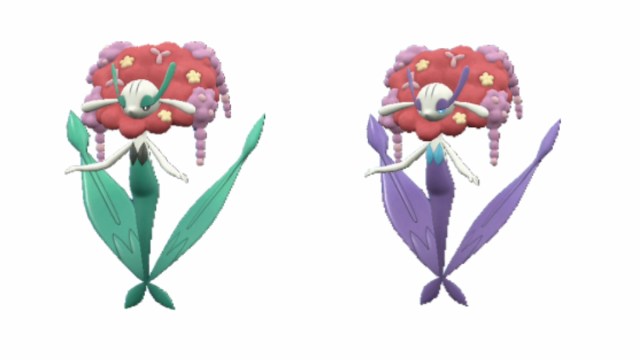Shiny Florges (Yellow)’s color difference is pretty significant compared to its non-shiny version. This is because it changes the green parts of its body to purple. You can catch this shiny at North Province Area Three.