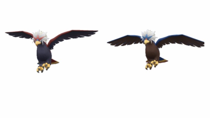 The color of Shiny Braviary undergoes a simple but noticeable change. It changes the color of its back from red to blue. You can catch this shiny at Asado Desert and North Province Area One.