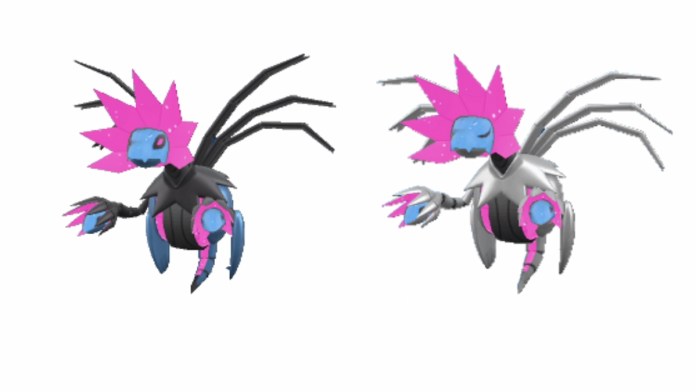 This shiny completely changes its color scheme when compared to its non-shiny counterpart. It goes from a green, orange, red, white, and yellow palette to a purple, black, red, yellow, and green color palette. You can catch this shiny at Casseroya Lake, North Province Areas One, Two, and Three, Socarrat Trail, and South Province Areas Four and Six.