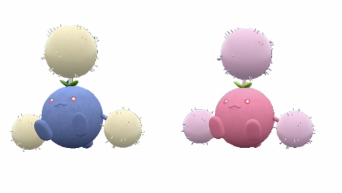 Shiny Skiploom has a small but visible color variation from its non-shiny version, just like its pre-evolution. It changes its body color from green to pink, the opposite of Shiny Hoppip. You can catch this shiny at East Province Areas One and Two, South Province Areas Three and Five, and West Province Area Two.
