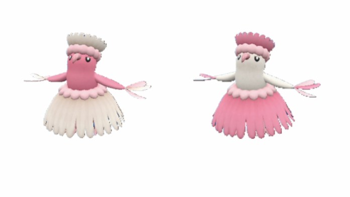 Shiny Oricorio (Pa’u Style) has a simple but noticeable change in appearance. It inverts its colors from a pink body with beige feathers to a beige body with pink feathers. You can obtain this shiny by giving Shiny Oricorio red nectar.
