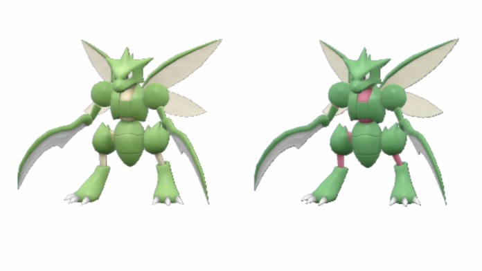Shiny Scyther barely has any change in color compared to its non-shiny version. It simply darkens its color from apple green to regular green. You can catch this shiny at Casseroya Lake, North Province Area Two, South Province Area Four, and South Province Area Six.