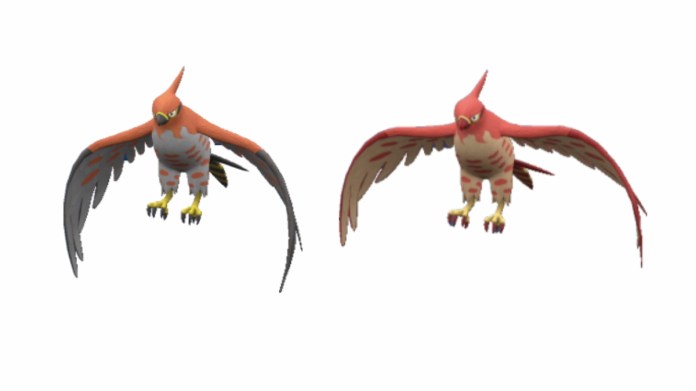 The color change of Shining Talonflame is somewhat minor. The marks are the same, but the feather color varies. The original version’s feather is orange with a gray underbelly, whereas the shiny version’s feather is red with a beige underbelly. Shiny Talonflame can be found in the South Province’s Area Three.