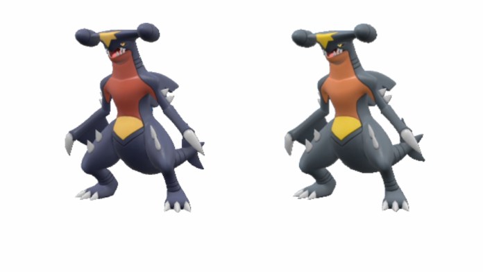 Unlike its pre-evolution, Shiny Garchomp’s change in color is barely noticeable. It simply lightens the shade of its color to a more gray color from bluish-black. You can catch this shiny at the Great Crater of Paldea and West Province Area Two.