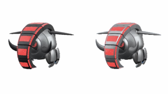 Shiny Iron Treads’ color change is pretty simple but noticeable when compared to its non-shiny counterpart. It changes the black parts of the body to silver, giving that all-metal look. You can catch this Area Zero.