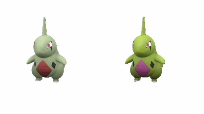 This shiny’s color change is pretty significant compared to its regular version. It changes its entire body color from light brown to apple green. You can catch this shiny at Asado Desert.