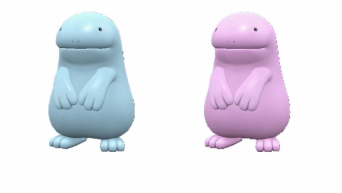 Like its pre-evolution Shiny Johtonian Wooper, Shiny Quagsire differs significantly in color from its non-shiny counterpart. It completely changes its color pattern from sky blue with navy blue patterns to pink with dark pink patterns. This shiny may be obtained by evolving a Shiny Johtonian Wooper.