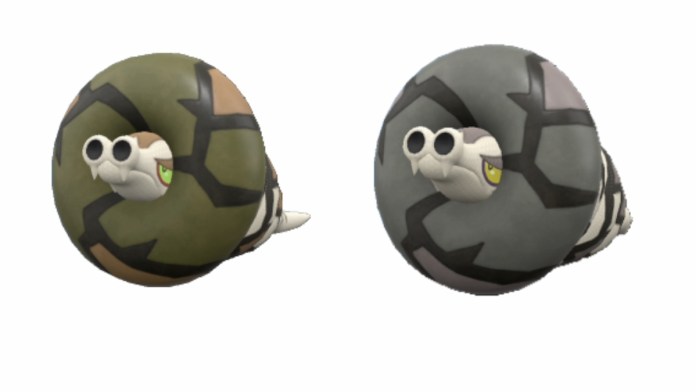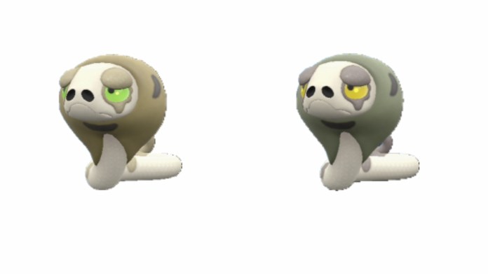 Compared to its non-shiny version Shiny Sandaconda’s color difference is really hard to miss. It changes its body color from moss green to gray. You can catch this shiny at Asado Desert.